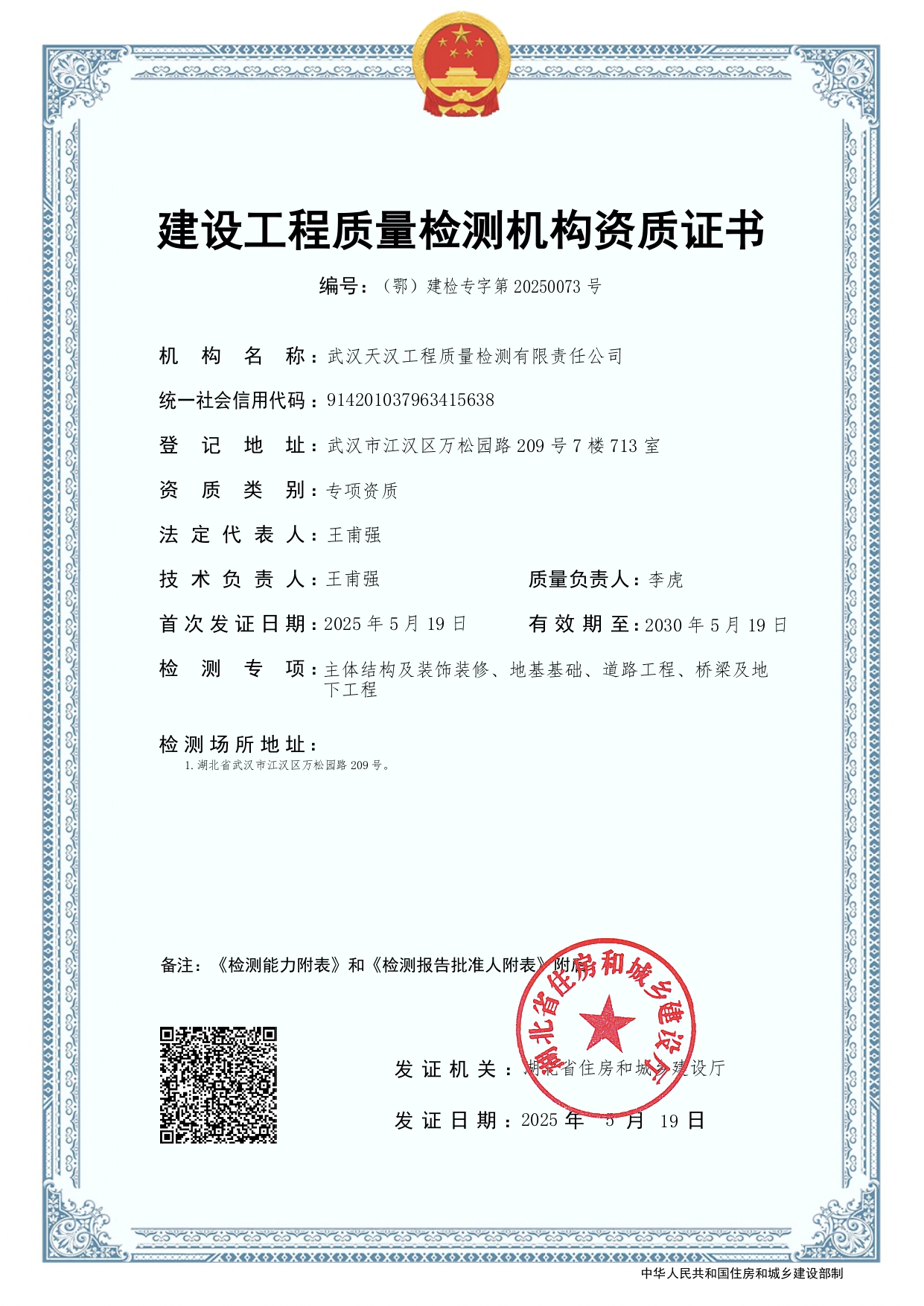 建設(shè)工程質(zhì)量檢測機構(gòu)資質(zhì)證書